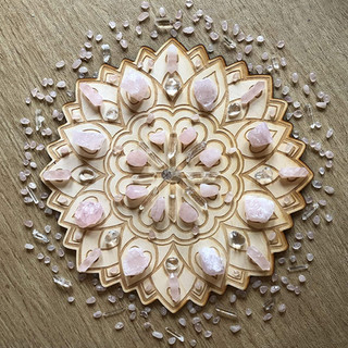 Basically, a crystal grid is a spacial arrangement of healing stones, used with intention, to manifest a desired result. The properties of the stones used, combined with their arrangement in a sacred geometric configuration, creates a unique energy frequency that can be used to enhance your intention and ability to manifest. Using crystal grids is very powerful as it combines the energy of the stone with Sacred Geometry (the language of the Universe). In this way, the crystal energy is enhanced exponentially because your intention is being amplified through the stones and then sent out to the universe in a clear and direct way through the sacred geometric formations. In other words, you can manifest results more quickly and efficiently than you would if you used a single crystal in a working or ritual.